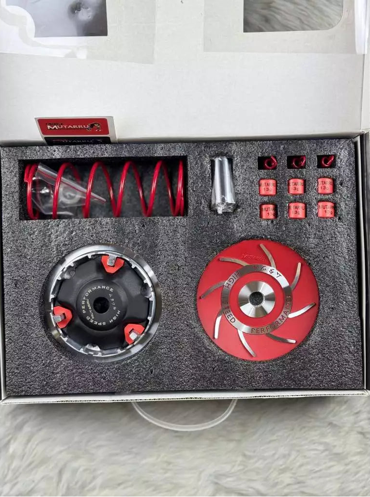 The MUTARRU Pulley Set is crafted with precision engineering to deliver smoother power transfer and enhanced engine efficiency. Built from durable, high-grade materials, it ensures reliable performance, improved acceleration, and long-lasting durability even under demanding riding conditions. Designed for both style and function, its refined red finish adds a premium, sporty touch to your motorcycle while maintaining optimal performance on every ride.